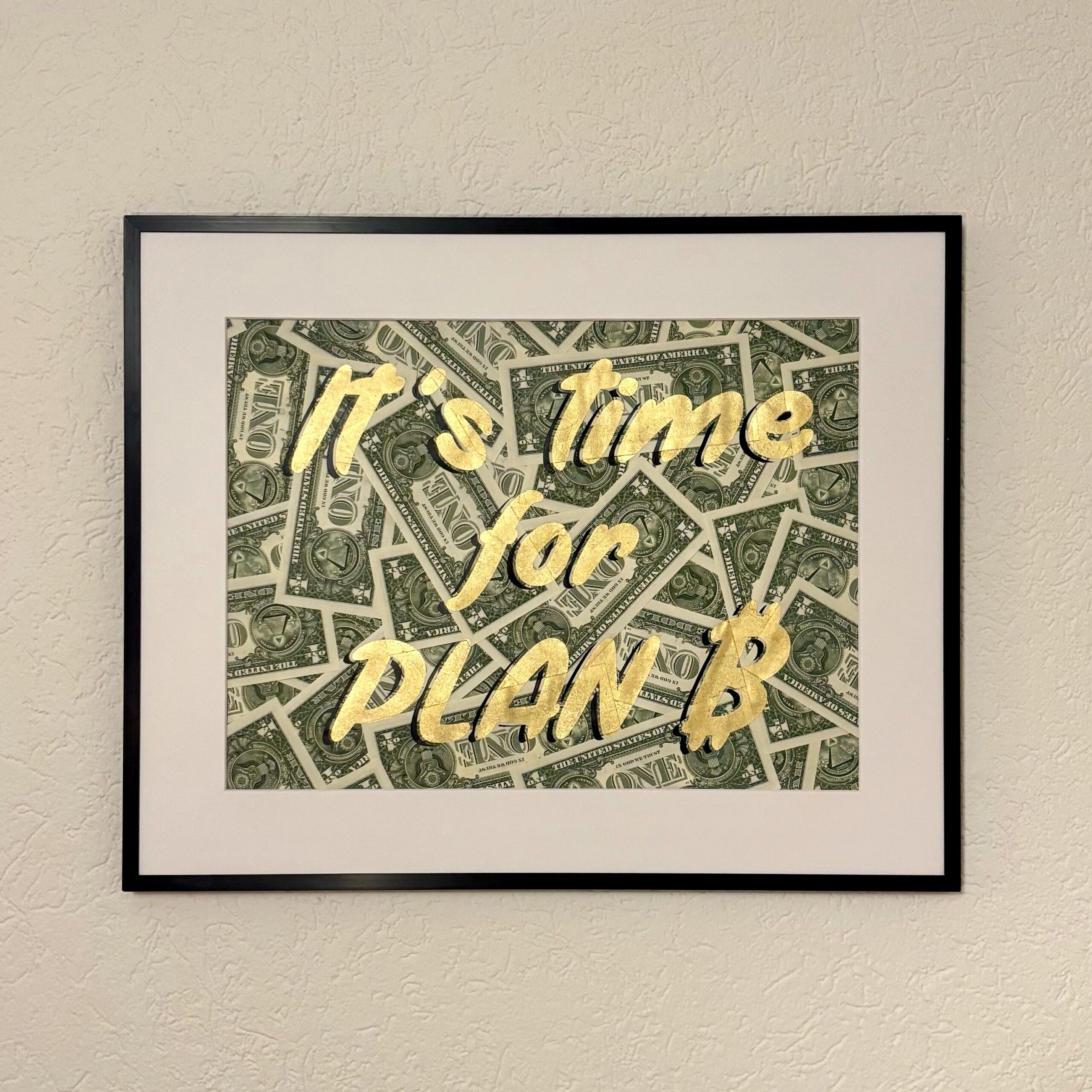Made from a canvas of US dollar bills covered in gold leaf.